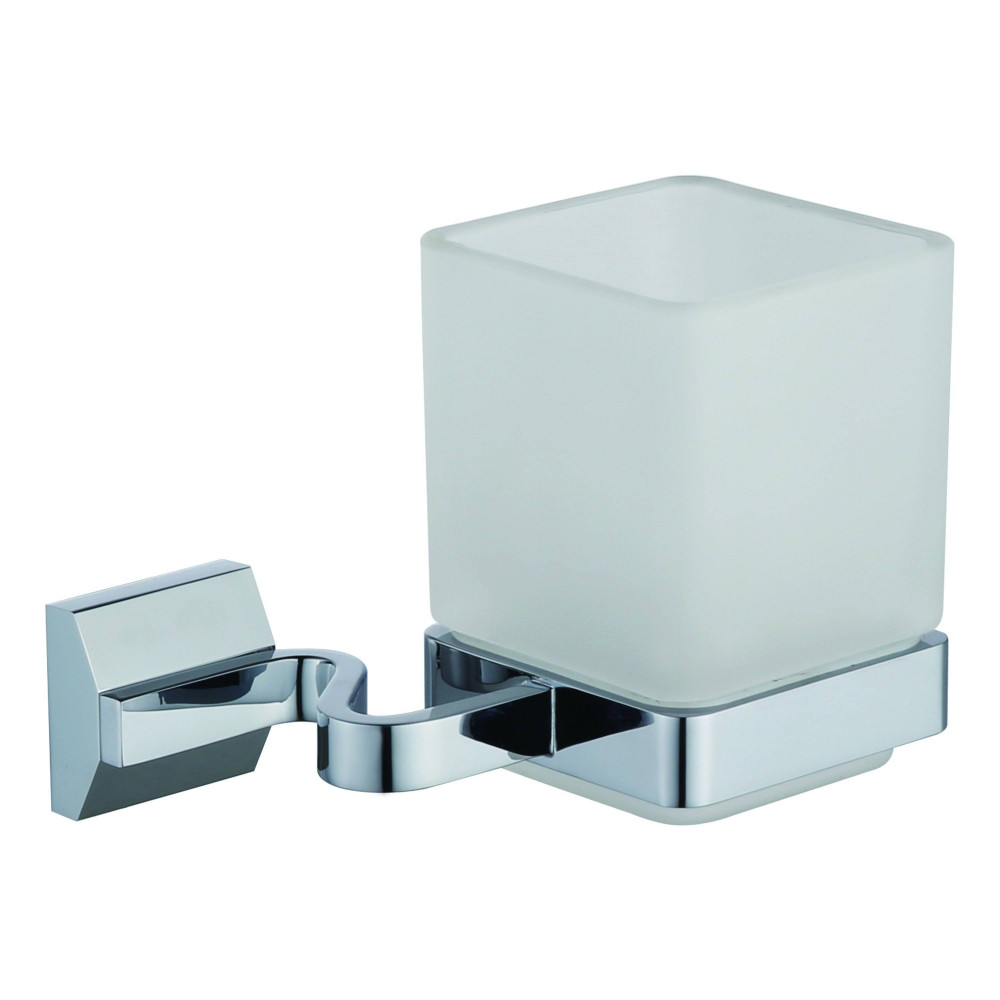 حامل فرشة اسنان مربع من الزجاج المثلج بقاعدة نحاس المطلي بالكروم اللامع من أنتاج شركة جولدن دروب الرائدة فى صناعة اكسسوارات الحمامات لأكثر من 25 عام .