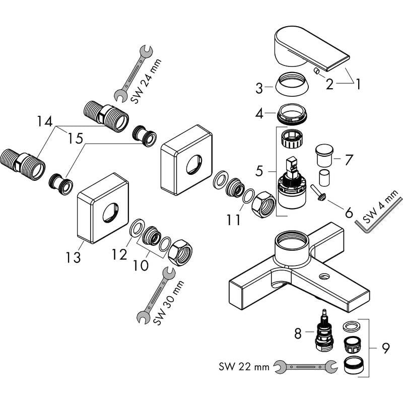 خلاط بانيو كروم فيرنيس مربع هانز جروهي hansgrohe