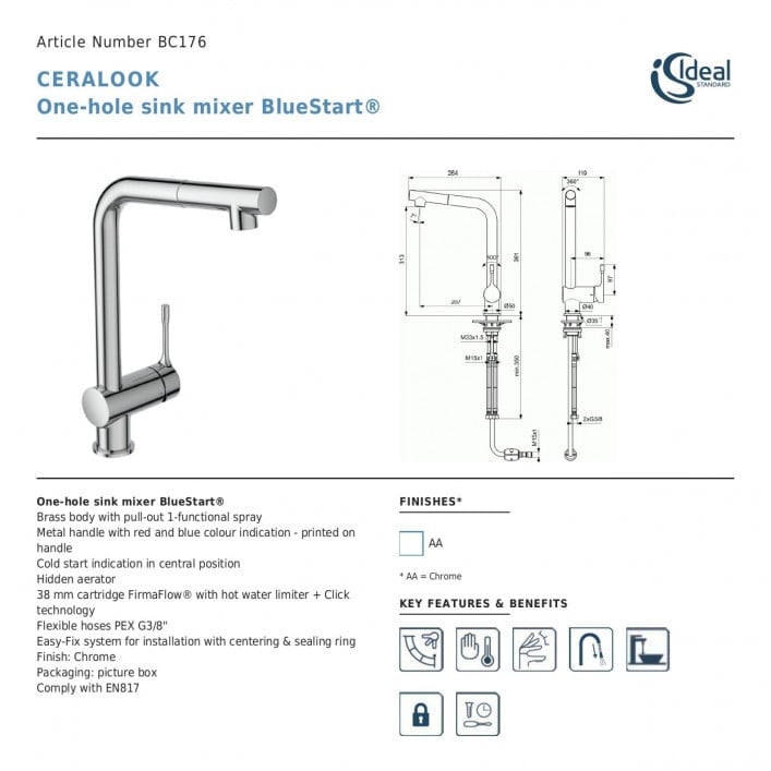 تستفيد Ceralook من تقنياتنا الرئيسية مثل تقنية Blue Start ® وتقنية Click وخرطوشة FirmaFlow ® الخاصة بنا، وتتجاوز معايير الصناعة من حيث طول العمر والأداء. يوفر Ceralook أيضًا منطقة راحة رائعة مع طرازات رفيعة لمجموعة أنيقة.