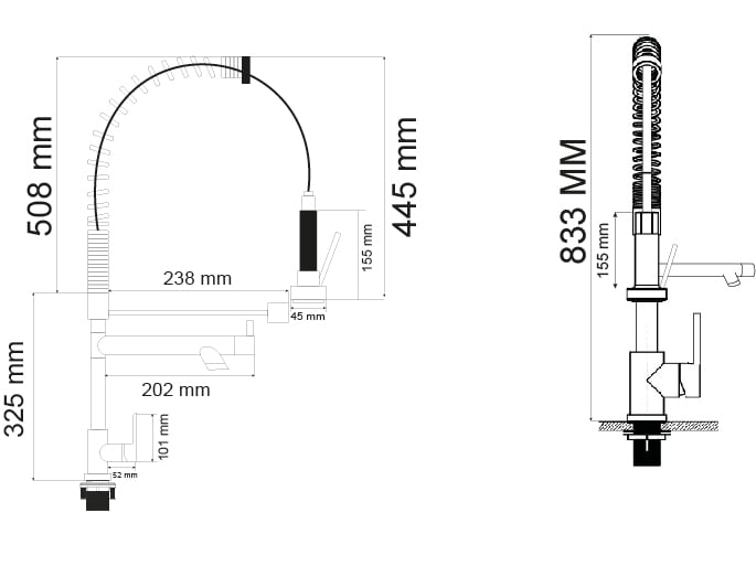إرتفاع كامل الخلاط : 70 سم من مكان التثبيت ل أعلى نقطة