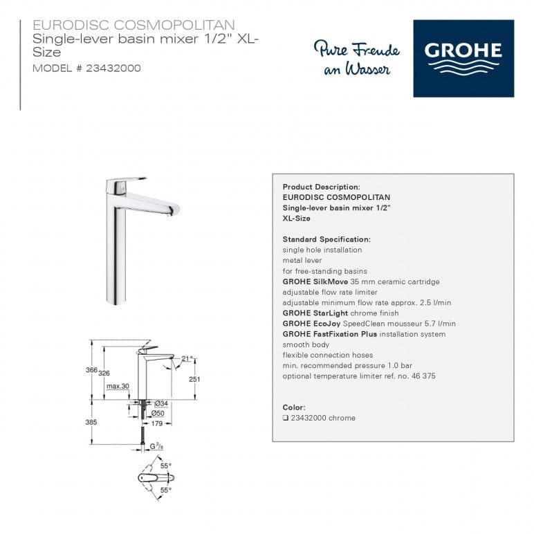 تُعتبر GROHE شركة رائدة عالميًا في مجال تزويد التجهيزات الصحية وهي علامة تجارية عالمية متخصصة في توفير منتجات مياه مبتكرة.