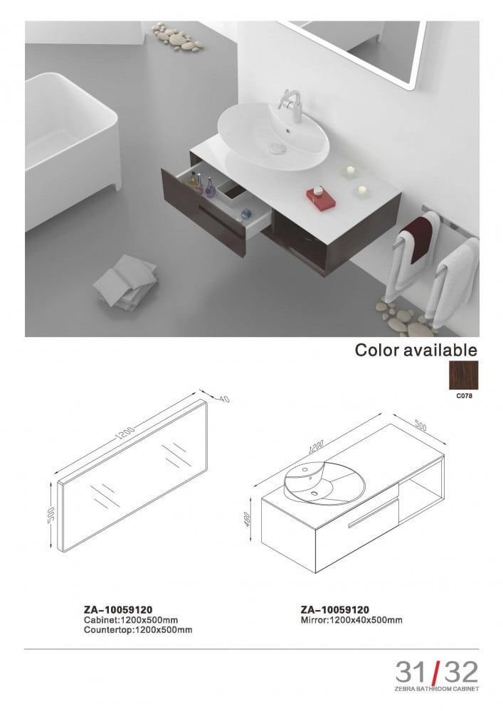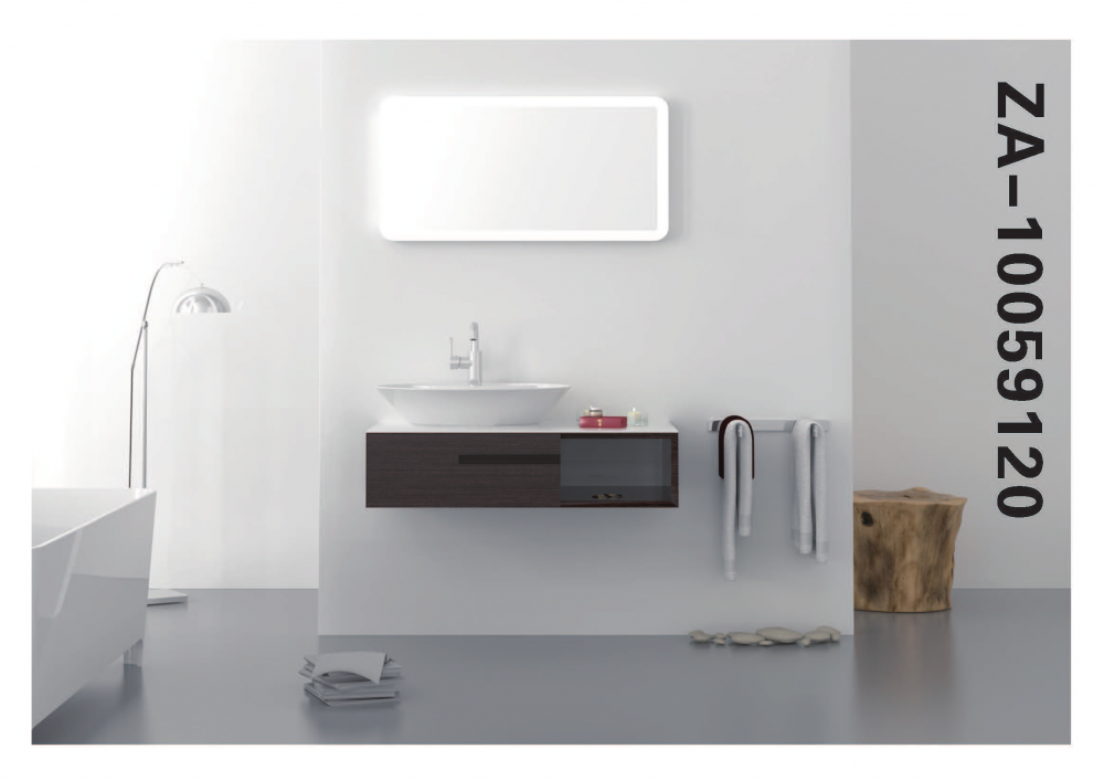 • اسم المنتج: مغسلة دولاب خشبي حوض رخام صناعي 120 سم و مرآة بإضاءة LED
