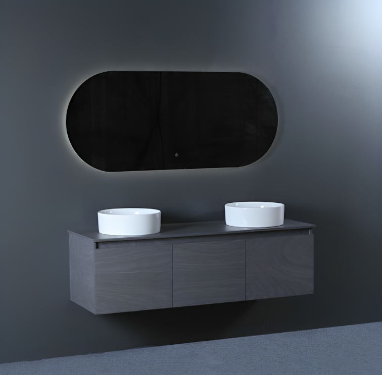 مغسله دولاب خشب ابيض لامع مع مرايه ليد 140 سم